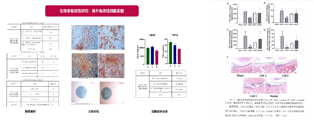 自主知识产权的“脐带间充质干细胞治疗膝骨关节炎”IND项目。通过建立膝骨关节炎实验模型,系统评估脐带间充质干细胞在关节腔注射后的治疗效果及免疫调节机制,项目数据显示,间充质干细胞治疗可显著改善软骨缺损,当前已完成临床前研究和安评。