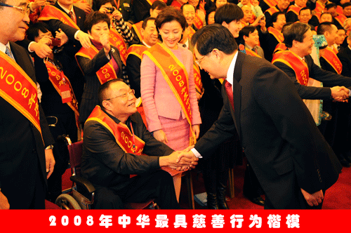 〔图2〕荣获"中华最具爱心慈善行为楷模",2008年12月8日在人民大会堂受到胡锦涛总书记、李克强副总理、回良玉副总理等党和国家领导人的亲切接见。